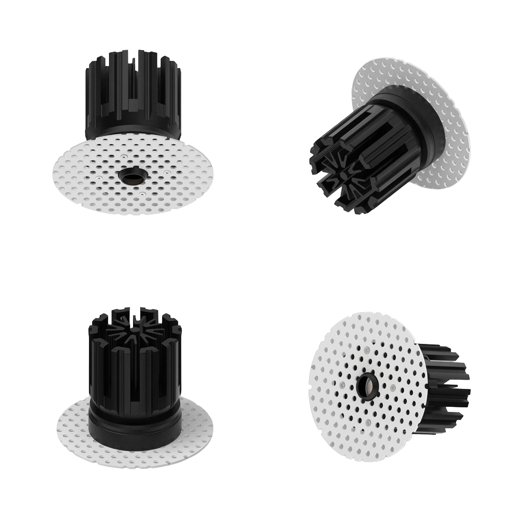 The 0.35 inch Pinhole delivers a clean, nearly invisible ceiling presence while maintaining precise, controlled illumination. Designed for trimless drywall installations, the aperture disappears into the surface, leaving only a small 9mm opening that produces a sharp, architectural beam.