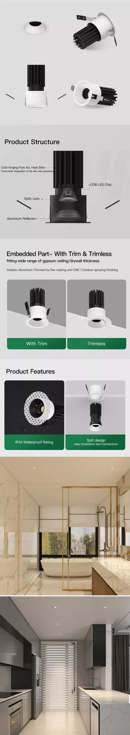 Use it anywhere you want a minimal recessed look with reliable performance in damp environments.