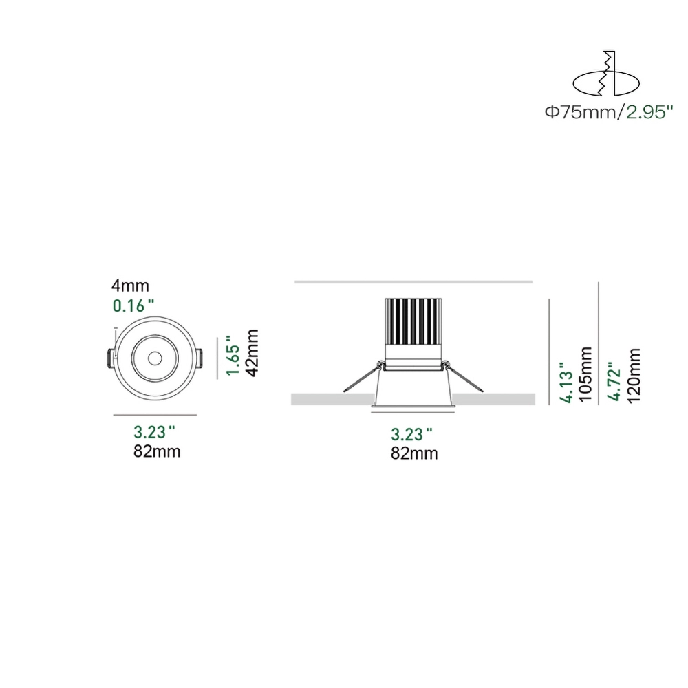 A high-performance 3.5 inch recessed round fixed downlight designed with a refined micro trim for a clean, modern ceiling appearance. Delivering high CRI light output with precise beam control, this fixture provides comfortable, glare-controlled illumination for residential, hospitality, retail, and commercial spaces. Its compact, fixed design makes it ideal for applications where consistency, visual comfort, and architectural integration are essential.