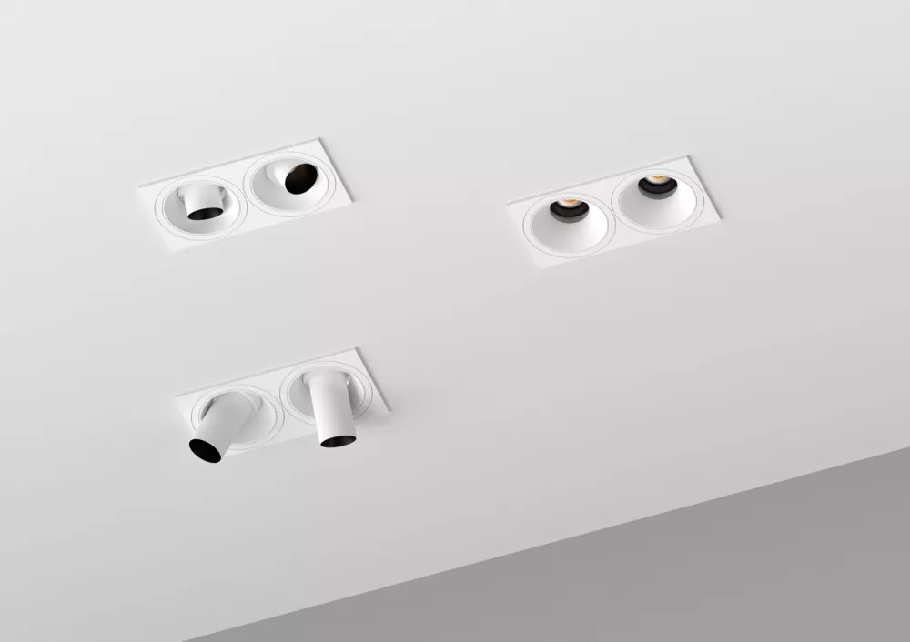 Available in black or white finishes, this double downlight integrates seamlessly into a wide range of interior styles. It is well suited for modern residences, retail environments, showrooms, offices, and other commercial spaces where precise, adjustable lighting is essential.