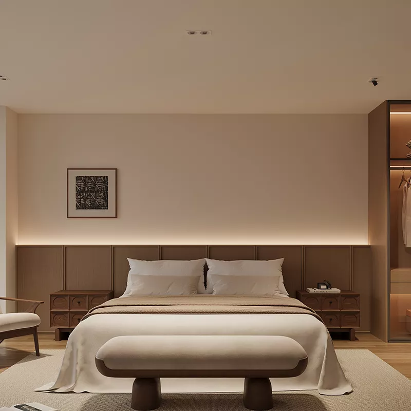 Each light engine is independently adjustable, offering a 25° tilt and full 360° rotation. This flexibility allows designers and installers to direct light exactly where it is needed, whether highlighting architectural details, artwork, or specific zones within a space. The optical lens system incorporates multiple anti-glare layers, producing soft, uniform illumination with reduced glare and minimal visual fatigue.
