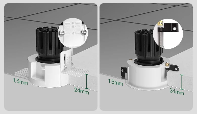 • Compact Dimensions: Stands at 82 mm (3.23 in) high and requires a 75 mm (2.95 in) cutout, making it suitable for a variety of ceiling types.