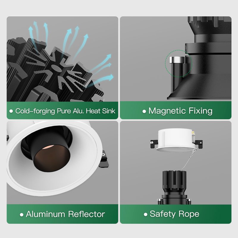 • Cold-Forged Aluminum Heat Sink: Ensures optimal thermal performance and extended lifespan.