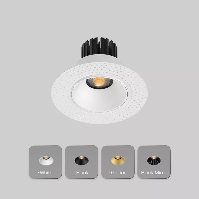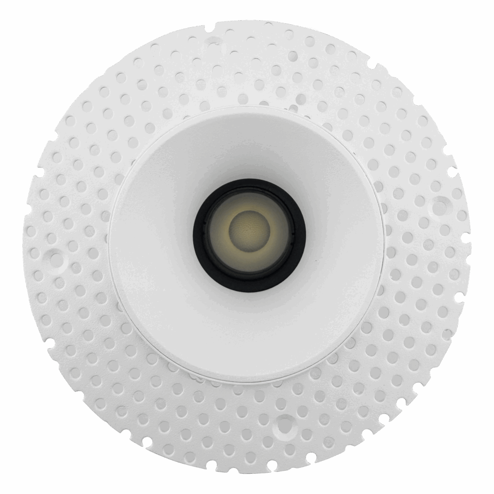 A refined 3 inch recessed round fixed downlight designed for clean architectural ceilings in moisture-prone interiors. Available in both micro flange and trimless versions, it lets you choose a subtle finished edge or a seamless plaster-in look while keeping the same light engine and performance. The fixed beam delivers smooth, predictable illumination for consistent layouts, and the IP44 rating protects against humidity and light splashing in spaces like bathrooms (outside shower zones), kitchens, spa corridors, laundry rooms, and covered soffits. A high-CRI COB source, deep glare-control optics, and a cold-forged aluminum heat sink work together to keep output comfortable, stable, and long-lasting.