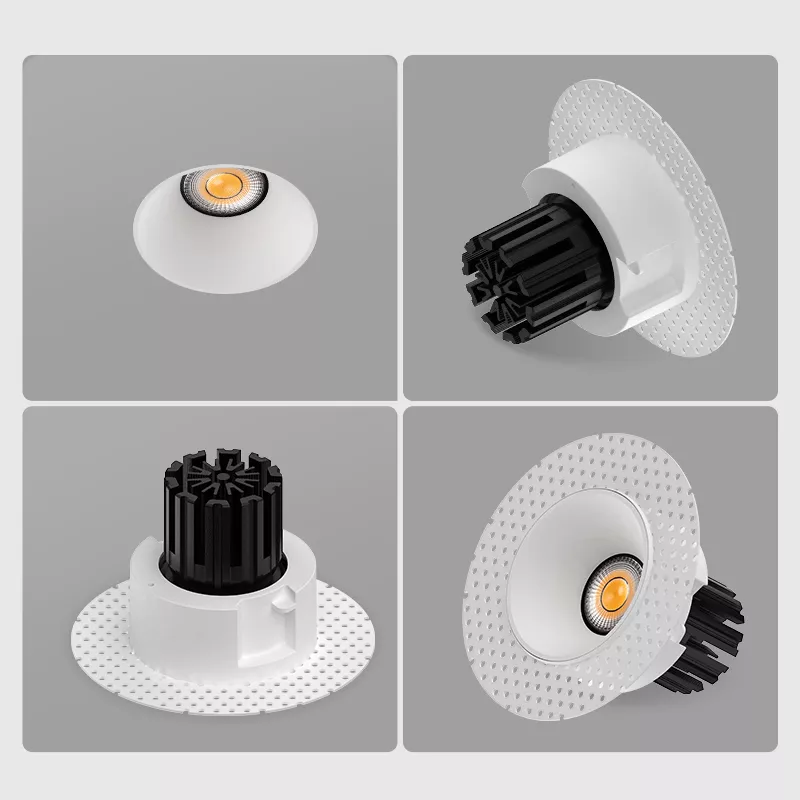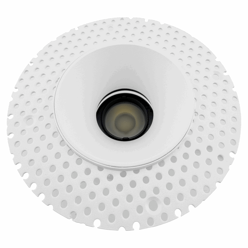 This fixture is offered in two ceiling expressions. The micro flange version provides a crisp, minimal border that finishes cleanly against drywall or wood ceilings. The trimless version is designed for plaster-in applications, disappearing into the ceiling once mudded and painted. Both versions share the same housing, optics, and light engine, so performance stays identical. You are only choosing the finishing style.