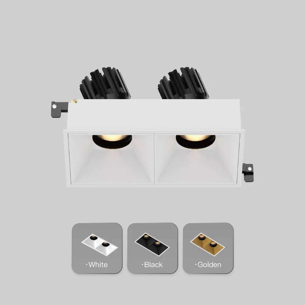 A 3 inch recessed square double adjustable downlight built for precise, flexible accent lighting in a clean architectural form. Available in both micro flange and trimless versions, it lets you choose either a subtle finished edge or a fully seamless ceiling look. Two independently adjustable heads allow accurate aiming onto artwork, shelving, feature walls, or layered focal points. High-CRI COB light engines, deep glare-control optics, and a cold-forged aluminum heat sink deliver stable output and long life. Ideal for luxury residential, retail, galleries, and hospitality interiors where one fixture needs to cover multiple targets.