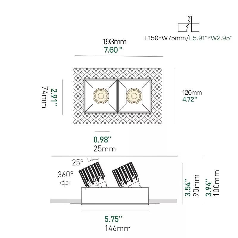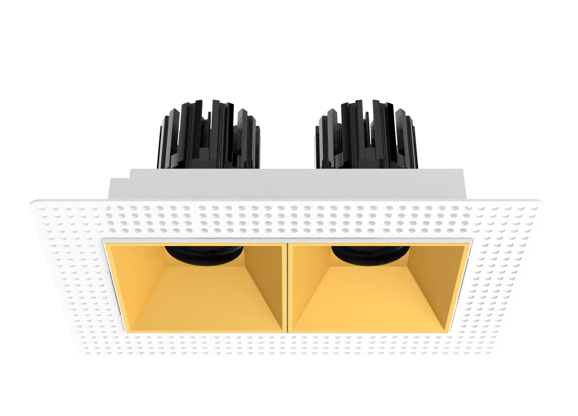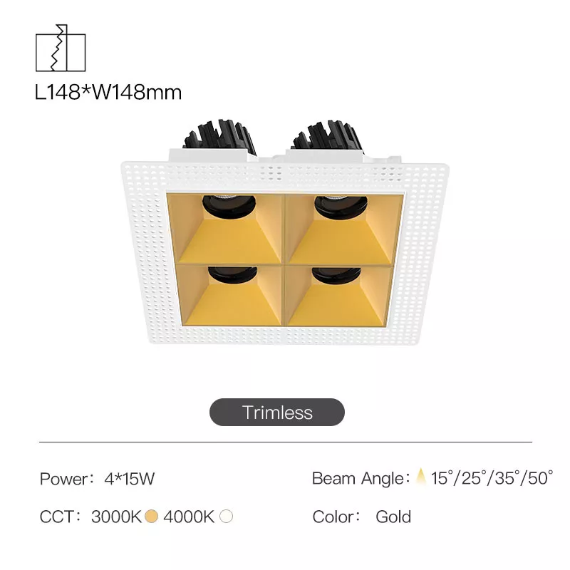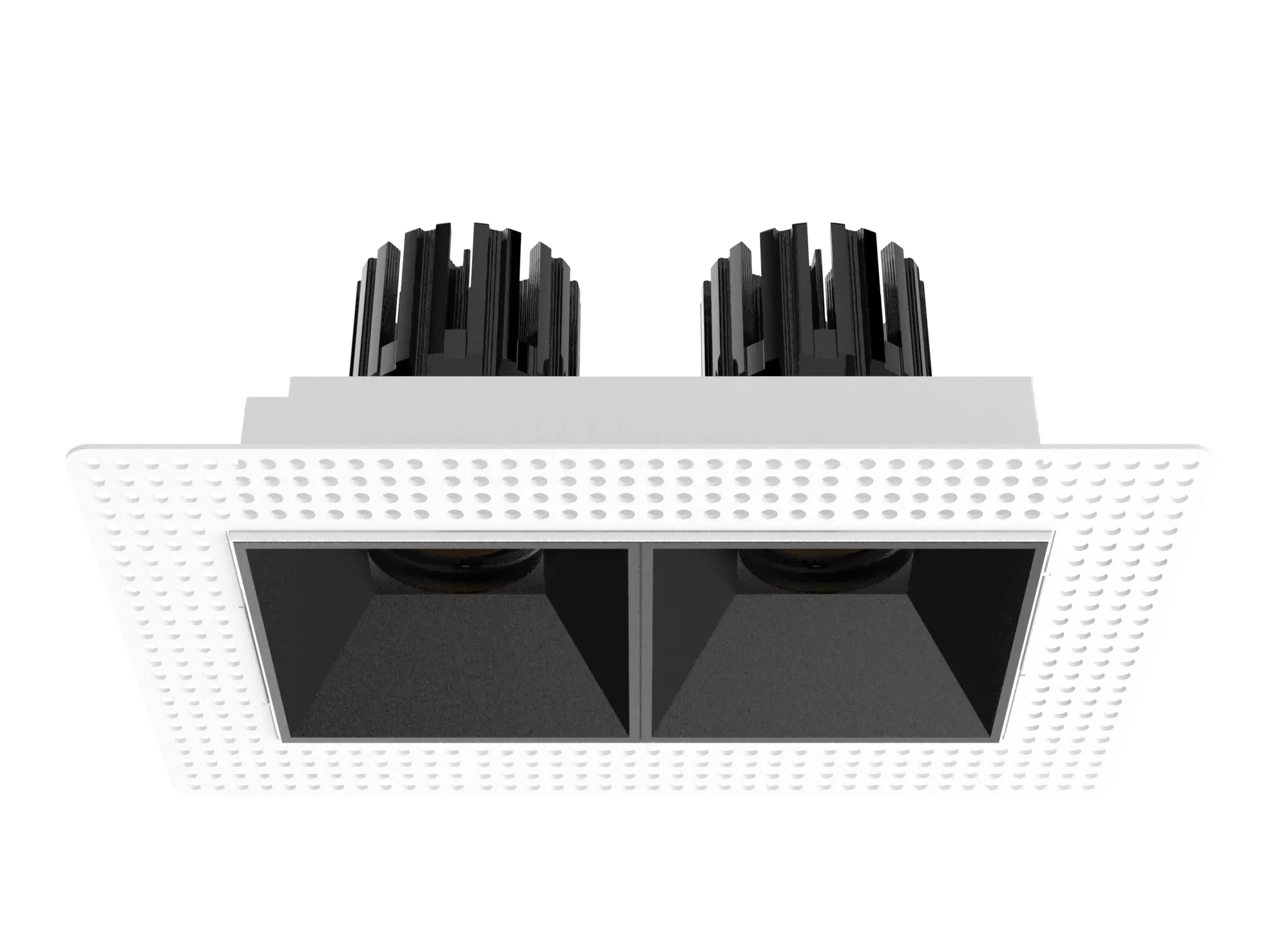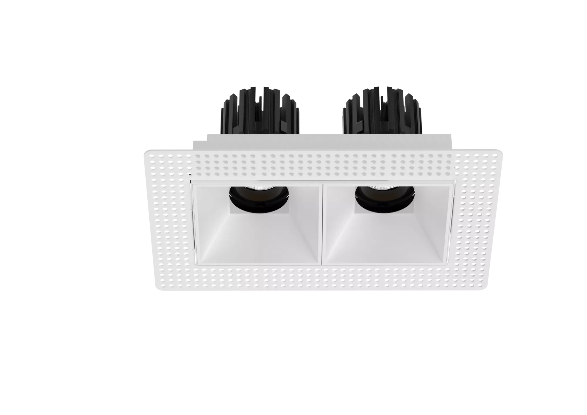 The 3 Inch Recessed Square Adjustable Double Downlight is designed for spaces that need more than one accent point without cluttering the ceiling. It comes in two trim styles so it fits different architectural finishes: a micro flange version with a clean, minimal border for a crisp detail, and a trimless version for a seamless plaster-in look. Same light engine and performance either way, just a different ceiling expression.
