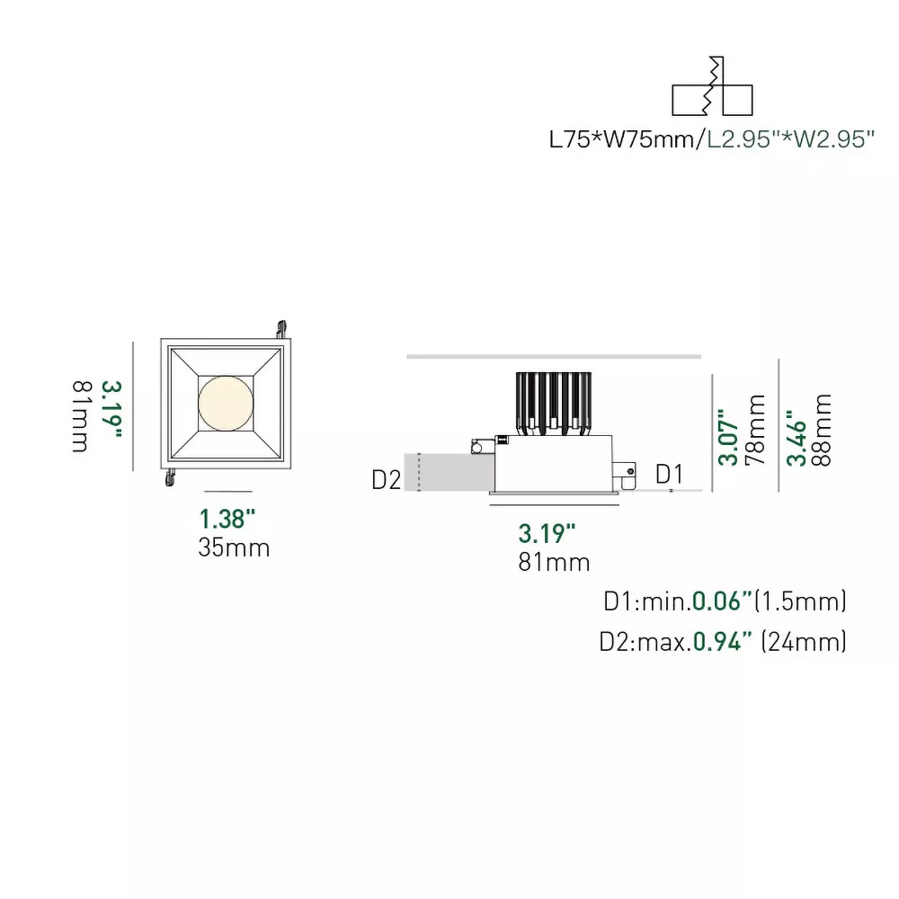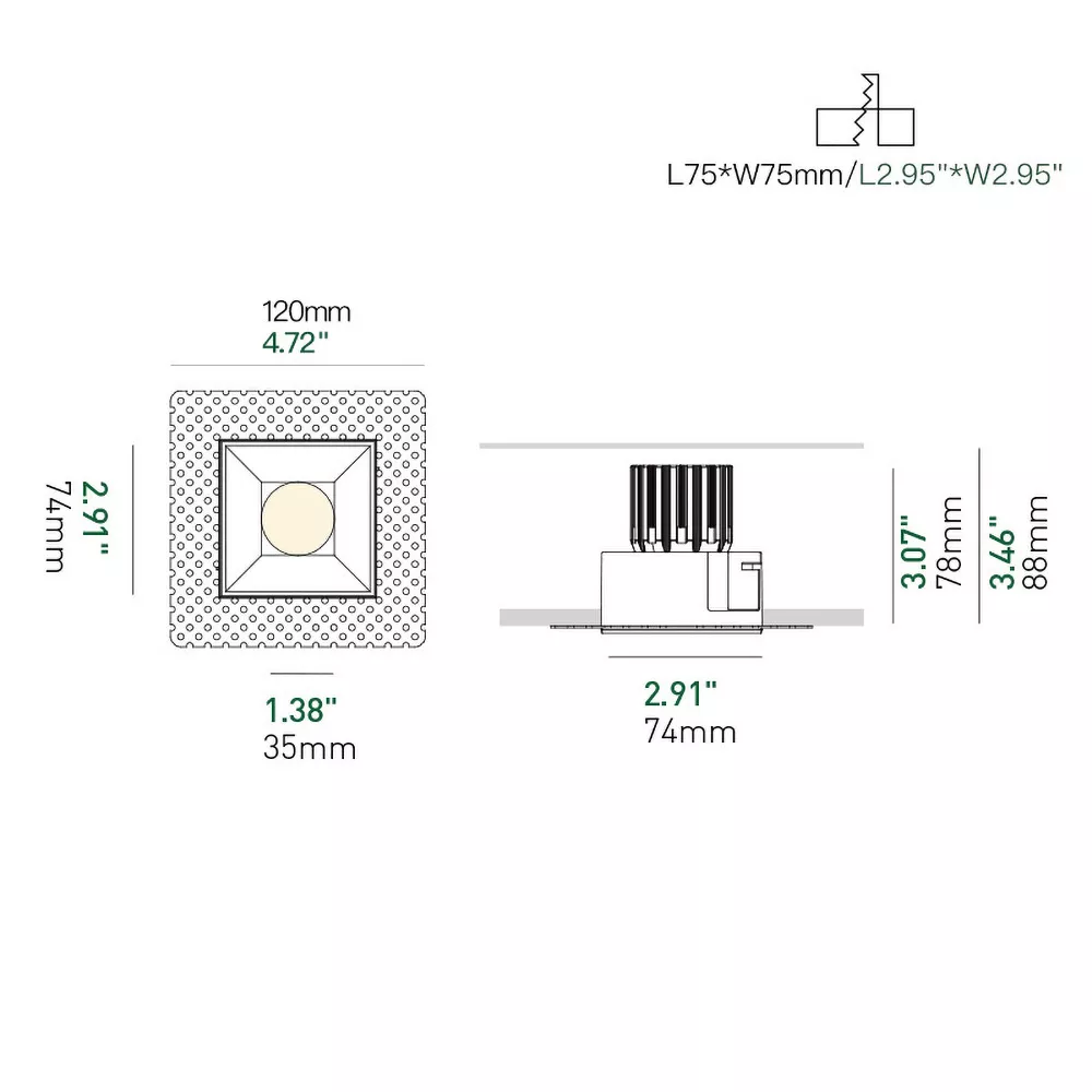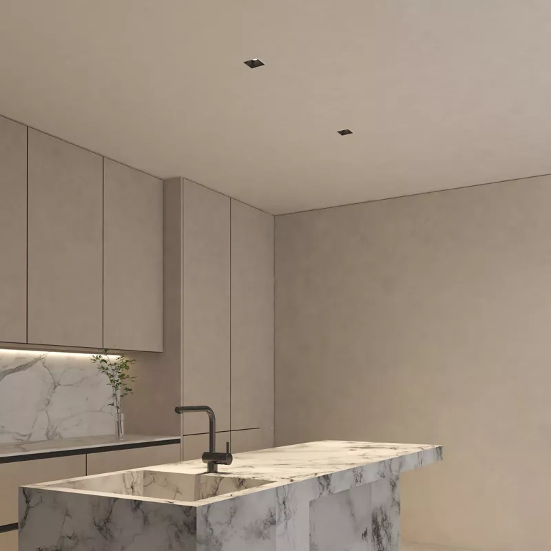 A clean 3 inch recessed square downlight built for projects that need a simple, reliable and watertight fixture. The fixed optical design delivers an even, controlled beam, the thermal system keeps performance steady, and the IP44 rating makes it safe for damp areas like bathrooms, covered exteriors and hospitality spaces. Straightforward to install and built to last.