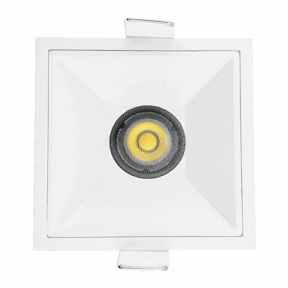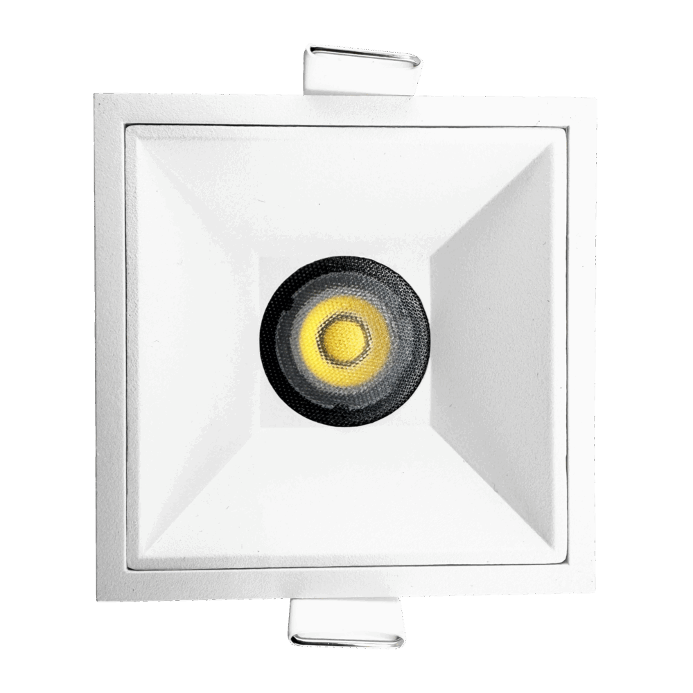 A compact 3 inch recessed square fixed downlight built for exterior and wet-zone ceilings where moisture, dust, and weather exposure are real factors. The IP65 seal protects the fixture against water jets and airborne debris, making it reliable for soffits, outdoor overhangs, showers, steam rooms, and spa-style bathrooms. Its fixed beam delivers consistent, predictable illumination, while the square trimless profile keeps the ceiling sharp and architectural. A cold-forged aluminum heat sink stabilizes the COB LED for long life and steady color, and deep glare-control optics create a clean, comfortable beam even in reflective outdoor stone or tile environments.