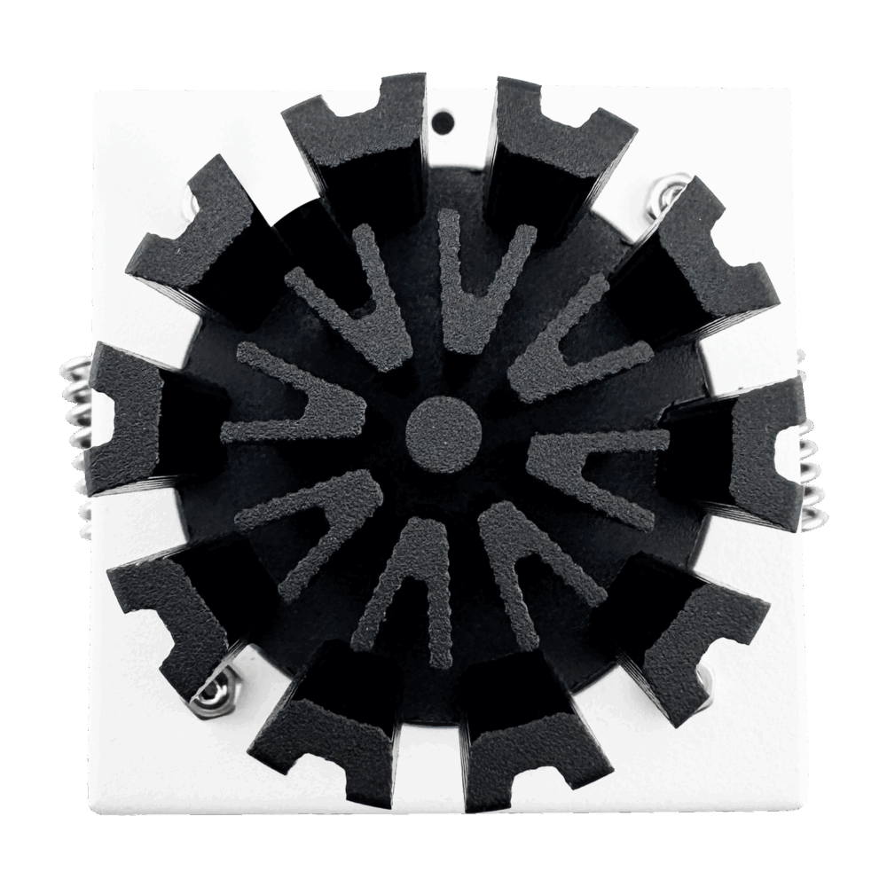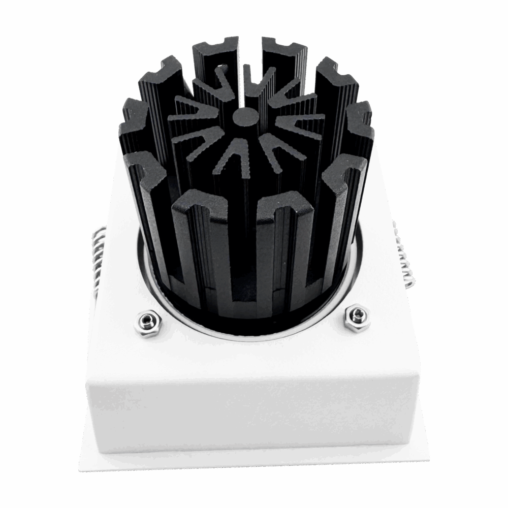The square trimless profile gives a crisp, modern ceiling look that fits luxury architecture and contemporary exteriors. Because the optic is fixed, the lighting plan stays uniform and predictable, which is especially important in outdoor walkways and wet interiors where even spacing and consistency matter more than adjustable aiming.