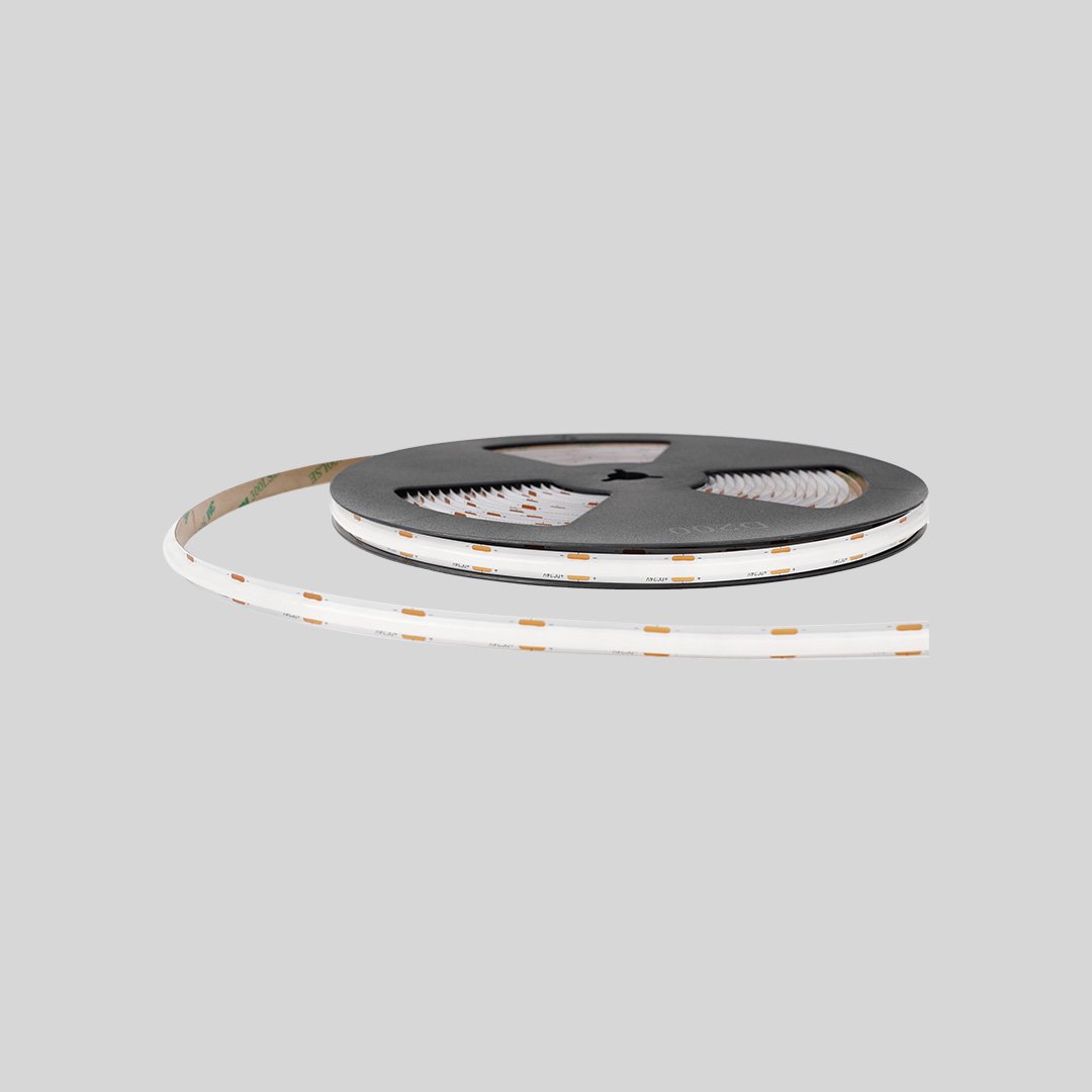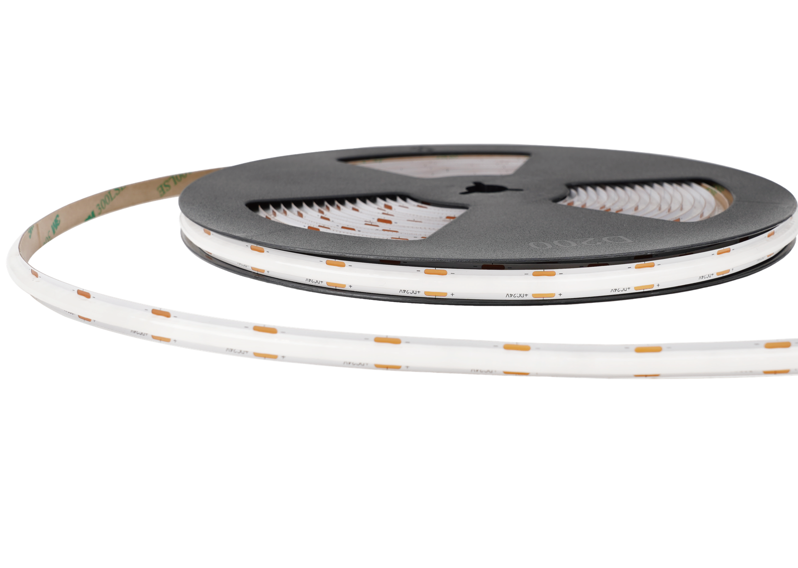 High density 8mm DOB LED tape with 288 LEDs per meter, 24V input, and CRI 90 for clean, uniform illumination. Designed for seamless linear lighting with no visible spotting, 180° beam spread, and a 5m roll format for architectural, millwork, and cove applications. UL listed and dimmable for professional installations.