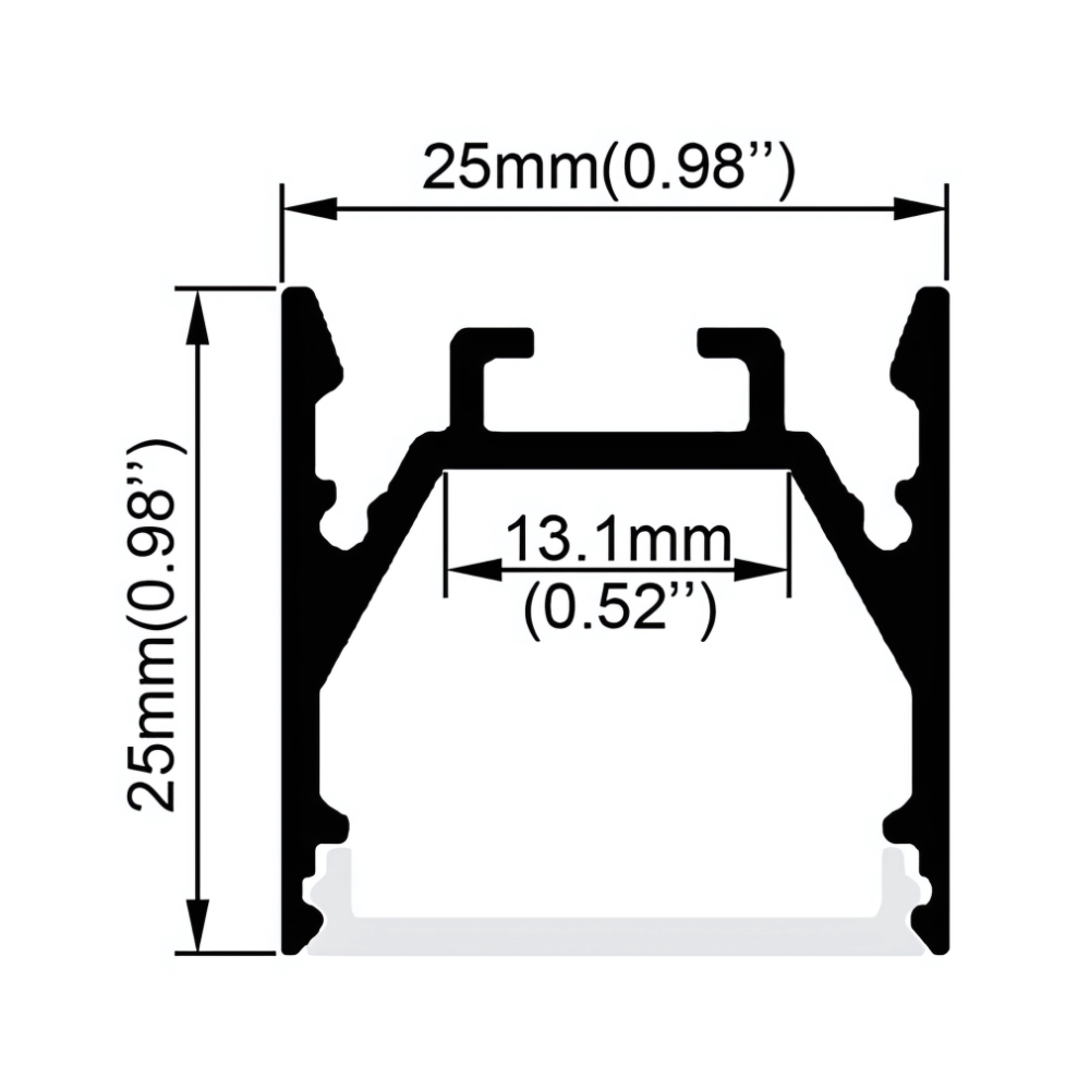 Transform your lighting design with the versatile AS2525 LED Aluminum Channel. This premium 25mm×25mm square profile offers exceptional flexibility with both surface-mount and suspended installation options, making it perfect for creating distinctive lighting effects in any space. Constructed from high-quality AL6063-T5 aluminum with a generous 13mm internal mounting area, this channel provides optimal heat dissipation while accommodating various LED strip configurations. The included PMMA opal diffuser creates soft, uniform illumination without harsh spotting. Available in silver, black, or white finishes with complete mounting accessories, the AS2525 delivers professional-grade lighting solutions for modern residential, commercial, and retail environments.