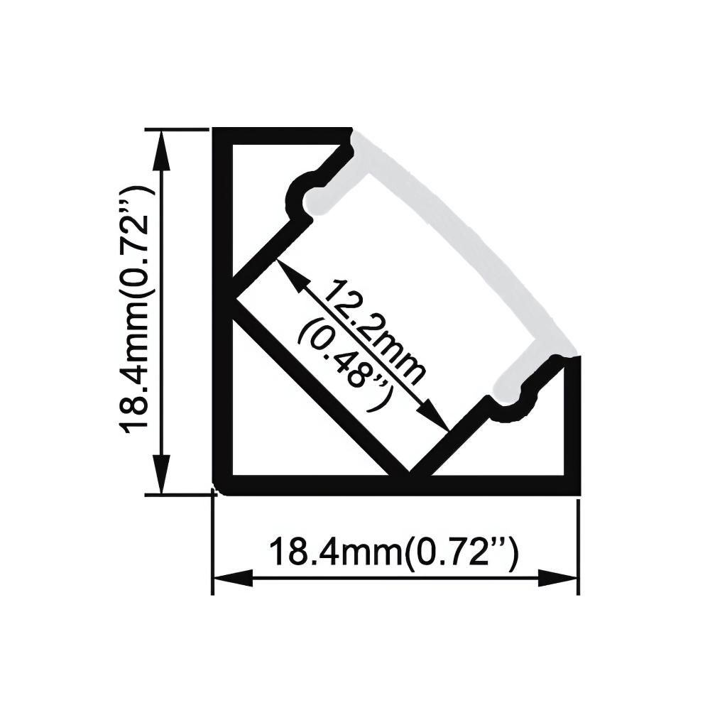 Elevate your lighting design with the diamond-shaped CR1818 LED Aluminum Channel. This fashionable 18.5mm×18.5mm angular profile, expertly crafted from premium AL6063-T5 aluminum, is specifically engineered for surface and 90° corner installations in furniture and interior spaces. Available in silver, black, or white finishes with multiple diffuser options, this versatile channel transforms standard LED strips into sophisticated lighting solutions. The CR1818 combines striking aesthetics with practical functionality, creating professional illumination for modern interiors while effectively managing heat dissipation for extended LED performance.