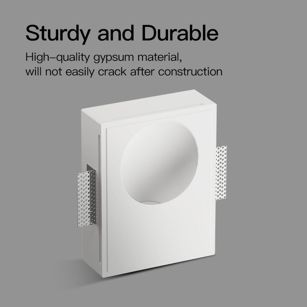 The fixture combines a gypsum outer housing with an aluminum light body to ensure proper heat management and long-term reliability. This construction supports stable output and consistent color over time, which is critical for plaster-in fixtures that are designed to be permanent architectural elements rather than replaceable accessories.