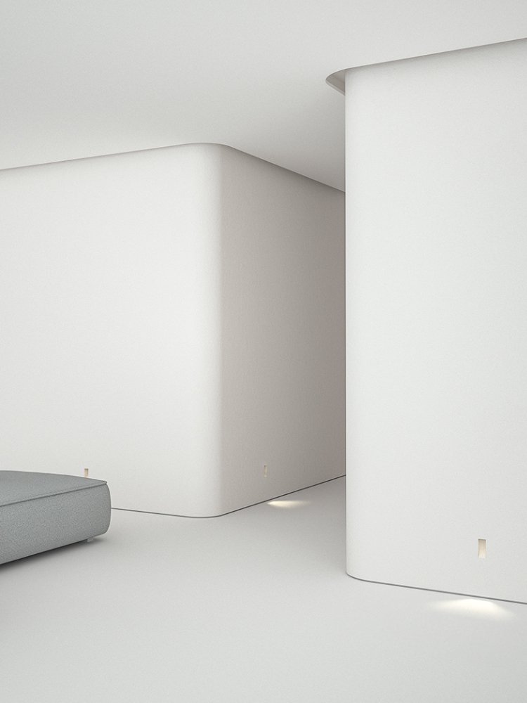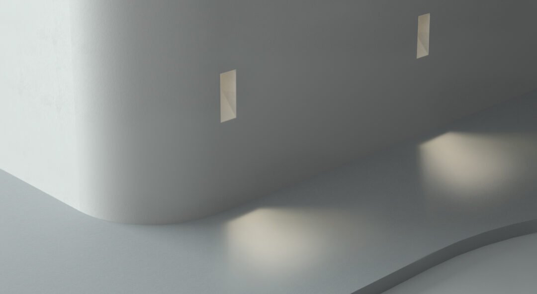 Light output is intentionally restrained and directional. The optic is designed to project light outward and downward, softly illuminating floors, steps, and circulation paths without causing glare or visual discomfort. This makes it especially effective in staircases, hallways, ramps, and transitional spaces where guidance lighting needs to be functional but calm.
